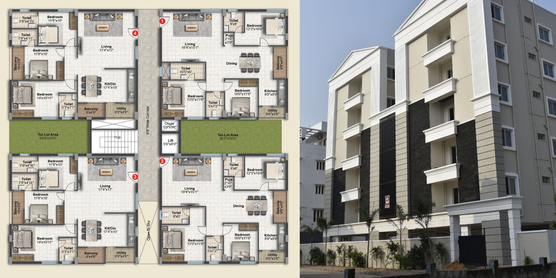 3 BHK Apartment for Sale, 1611 Sq.ft, West Facing