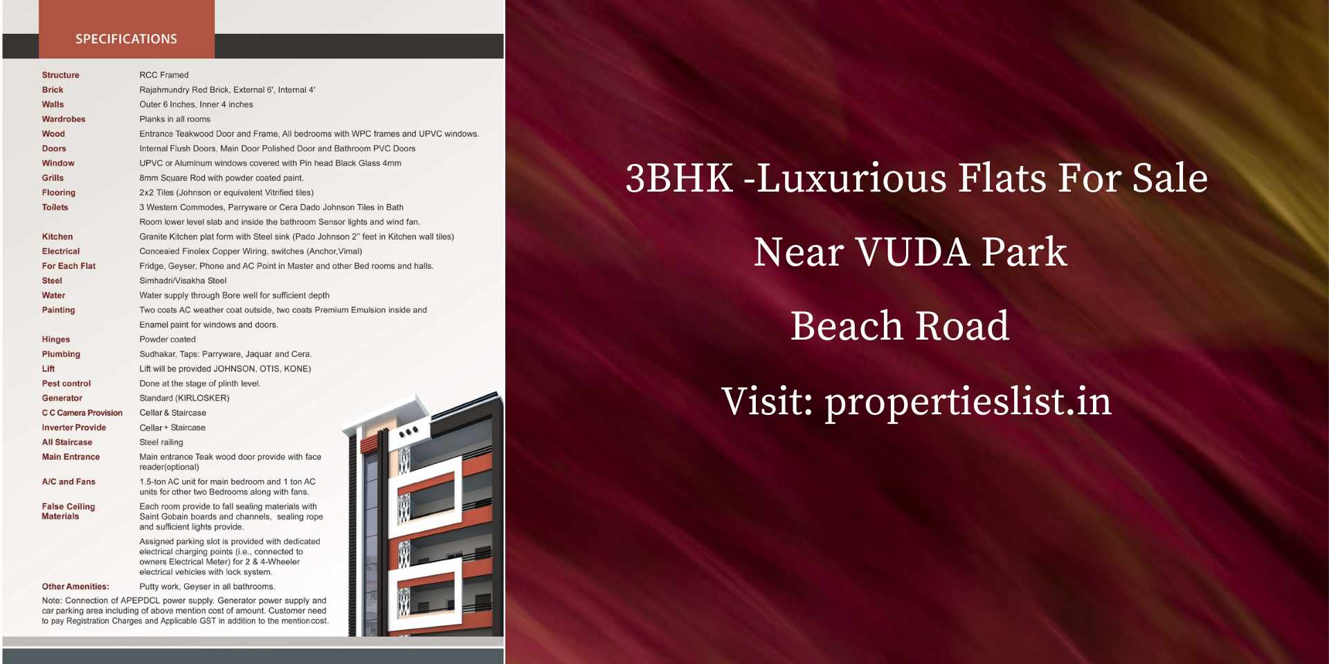 | 500 Sq.Yds S/F Plot at Pandurangapuram & 530 Sq. Yds E/F Beach Road & 1440 Sft. N/F 2BHK with 3 Balconies. |