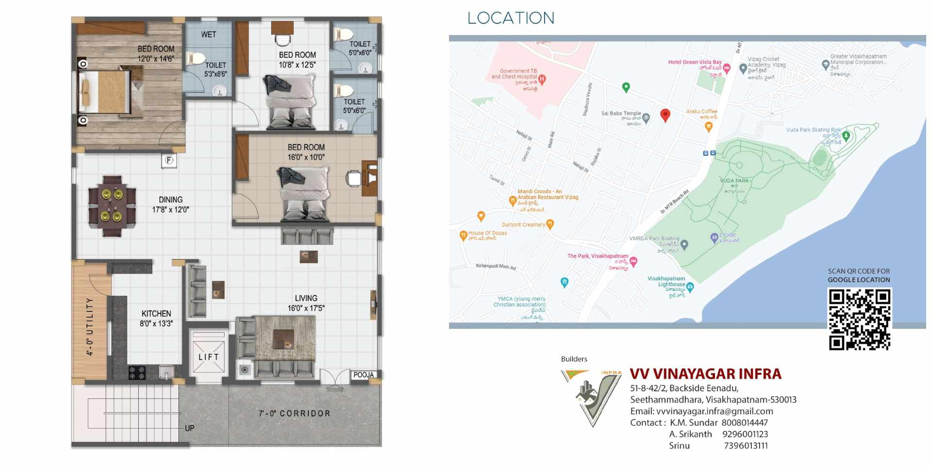 | 2660 Sft, 3 BHK flat 100 Sq.yds UDS @Beach Road, Vizag. |